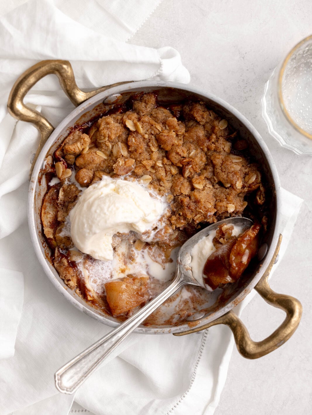 This full-size version of the Single Lady Apple Crisp is perfect for serving up for a girls night, fall dinner party, or Thanksgiving. Make sure you have ice cream on hand because it’s not apple crisp if it’s not à la mode!